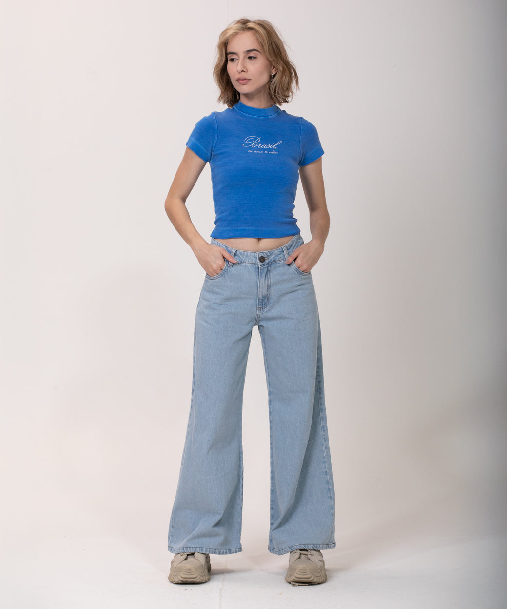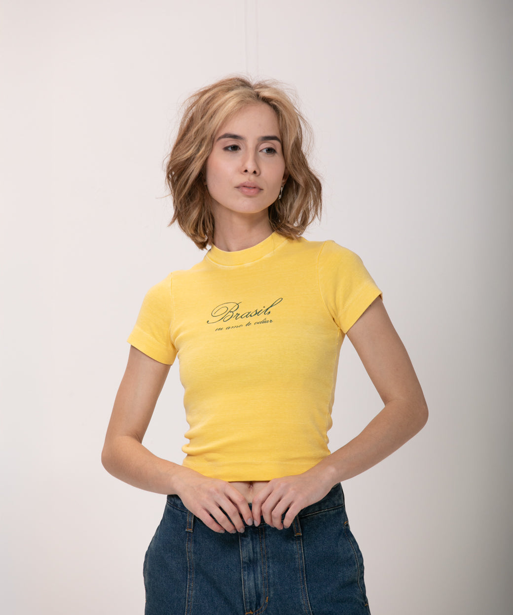 Não usamos tecidos de origem animal e evitamos usar tecidos sintéticos, sempre priorizamos o uso de tecidos e malhas naturais ou recicladas, produzidas no Brasil.