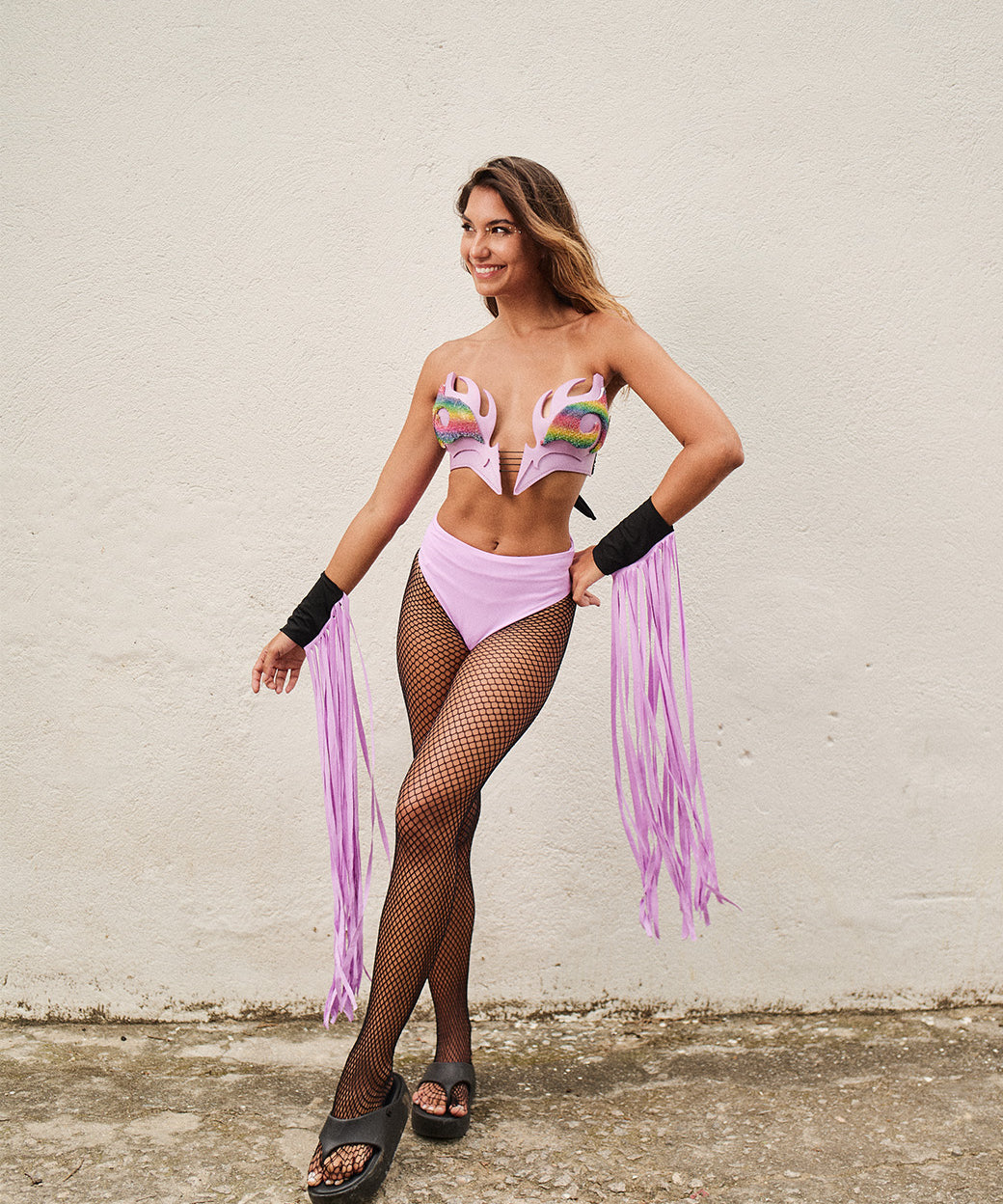 Conjunto Armadura Lilás (Hot Pant Lilás, Braceletes Lilás e Armadura Lilás)