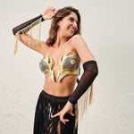 Bracelete feito em tule, com franjas de 20cm, finalizado com elásticos de 6cm no pulso e cotovelo para melhor ajuste e maior segurança para pular nos bloquinhos! Perfeito para compor seus looks de carnaval.