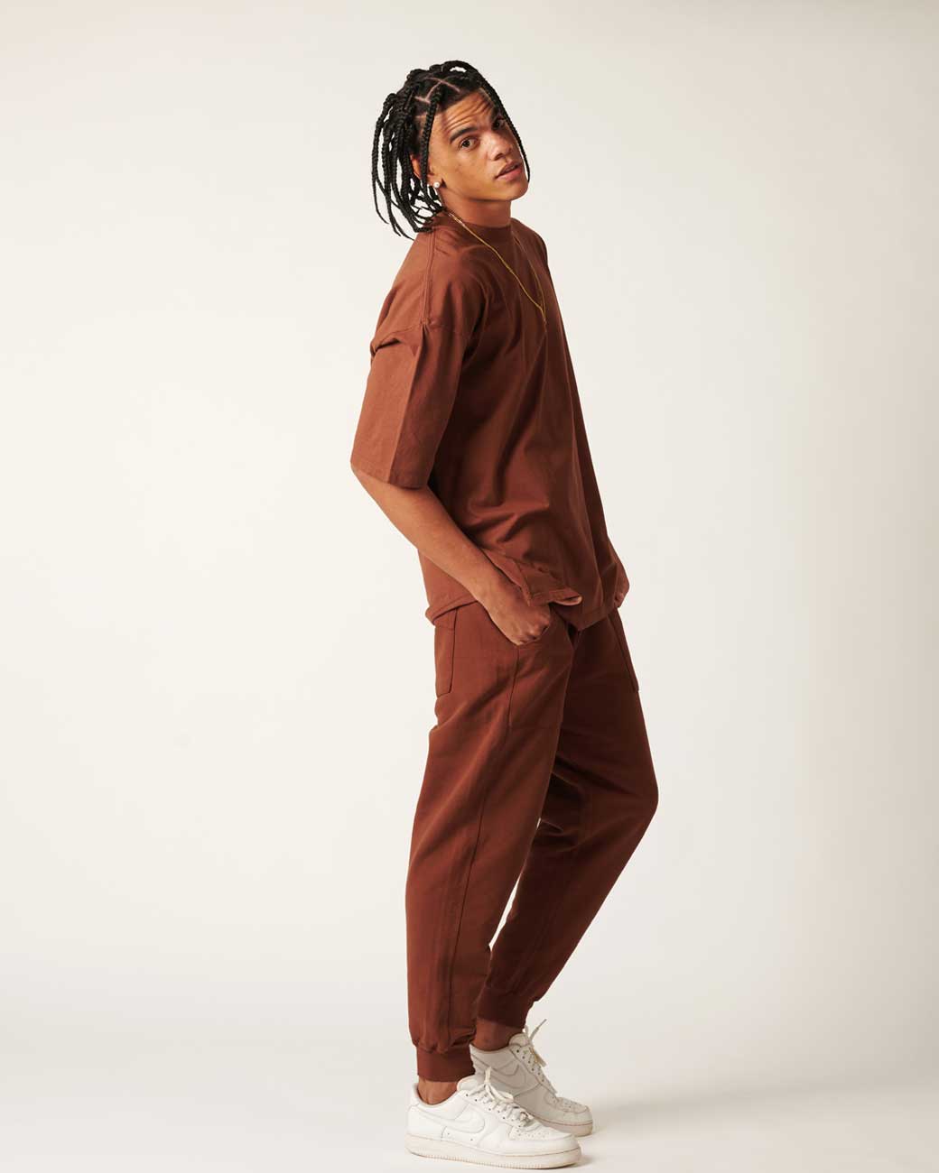 Camiseta Noventa Marrom 2.0 tem modelagem oversized, mangas 3/4 e gola fechada com ribana larga de 3cm. A camiseta tem um caimento perfeito e o detalhe da gola fechada, com a assinatura nas costas, faz dessa camiseta uma peça muito exclusiva. Ela é feita em 100% algodão sustentável e passa por um processo de amaciamento que deixa o toque dessa camiseta perfeito.