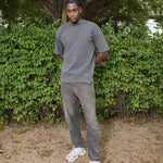 Camiseta College Quadrille Offwhite 2.0: novo acabamento sem ribana na manga. Feita em 100% algodão com trama em formatos de quadradinhos. Modelagem oversized, camiseta bem estruturada, gramatura de 230 g/m2, 100% algodão mas ao mesmo tempo é um tecido leve, a sua trama deixa a peça respirável. Ótima para o inverno.