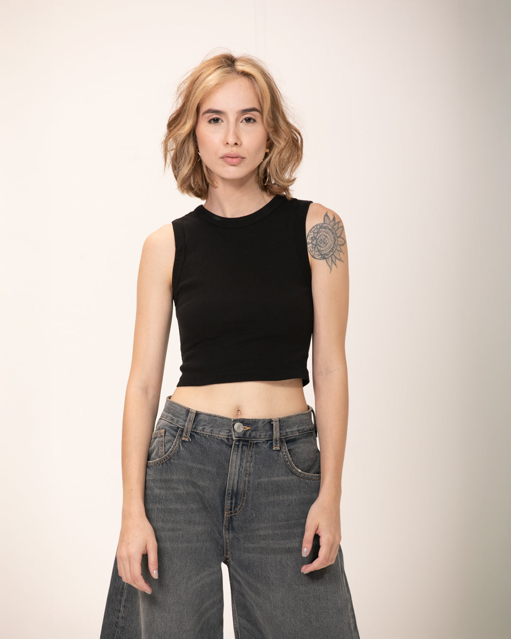 Regata em ribana pré-encolhida e amaciada, com toque macio. 100% algodão.