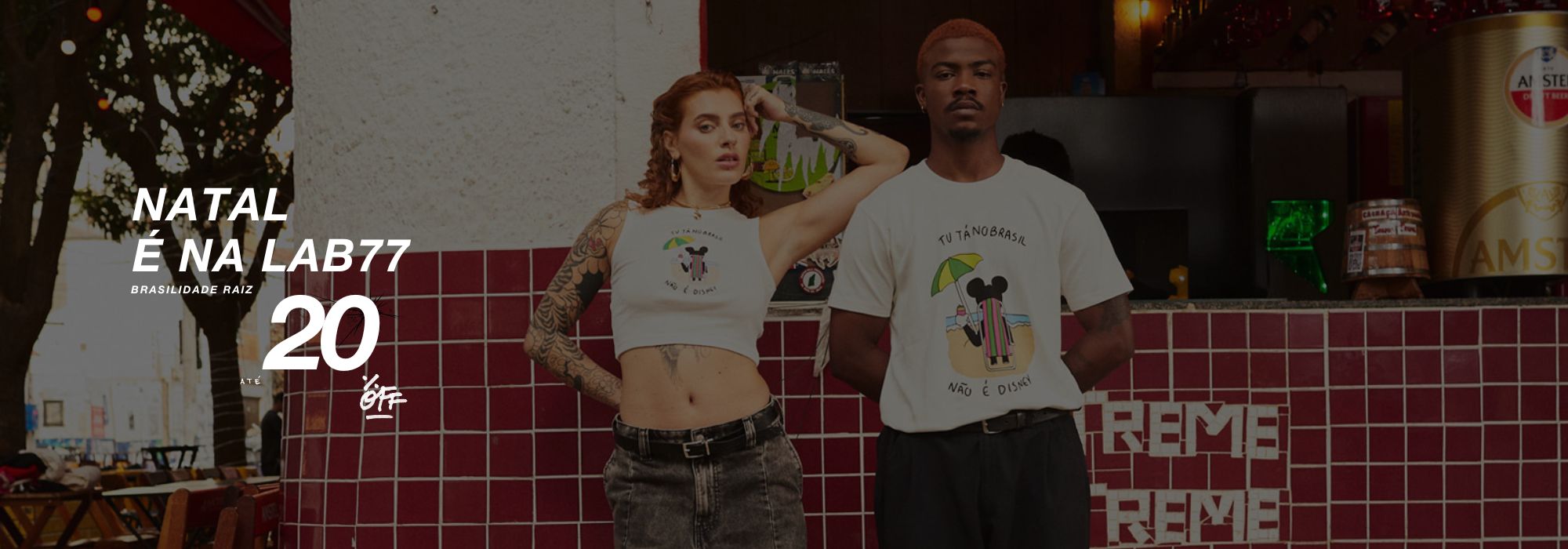 A LAB77 se conecta ao Raphael Brunet, o "Cansado da Internet", para lançar a colab Tu tá no Brasil Não é o pais das maravilhas — uma coleção que mistura o caos, a ironia e a vivência única que só nós, os brasileiros carregamos.