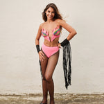 Armadura rosa Arco-iris é uma peça exclusiva, com produção limitada a apenas 25 unidades, a parte da frente que traz o formato do fogo é feita com pedras de strass formando as cores do Arco-iris.