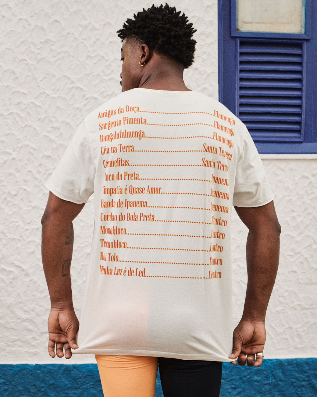 A camiseta Carnaval no Bloquinho na modelagem Relax Offwhite unissex tem a gola e as mangas cortadas a fio. Sua gramatura é mais robusta garantindo maior resistência a peça. Ela é mais soltinha para as mulheres e passa por um procedimento de lavagem que confere o produto um toque diferenciado com maciez extrema, além de não encolher na hora de lavar. A malha é 100% Algodão Nacional sustentável, certificada pelo selo BCI (better cotton initiative) que atua na conscientização das responsabilidades sócio ambientais no campo.