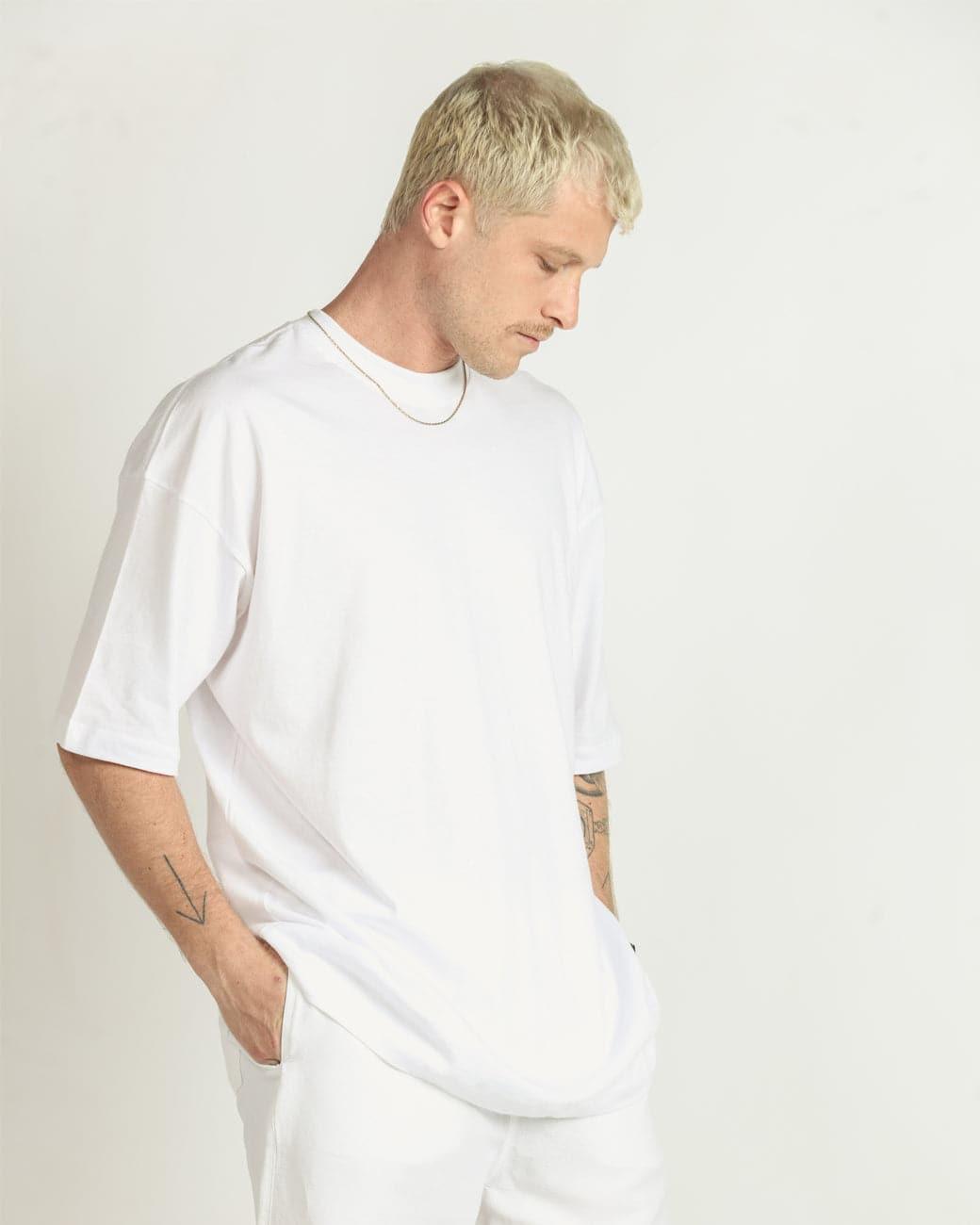 Camiseta Noventa Branca 2.0 tem modelagem oversized, mangas 3/4 e gola fechada com ribana larga de 3cm. A camiseta tem um caimento perfeito e o detalhe da gola fechada, com a assinatura nas costas, faz dessa camiseta uma peça muito exclusiva. Ela é feita em 100% algodão sustentável e passa por um processo de amaciamento que deixa o toque dessa camiseta perfeito.
