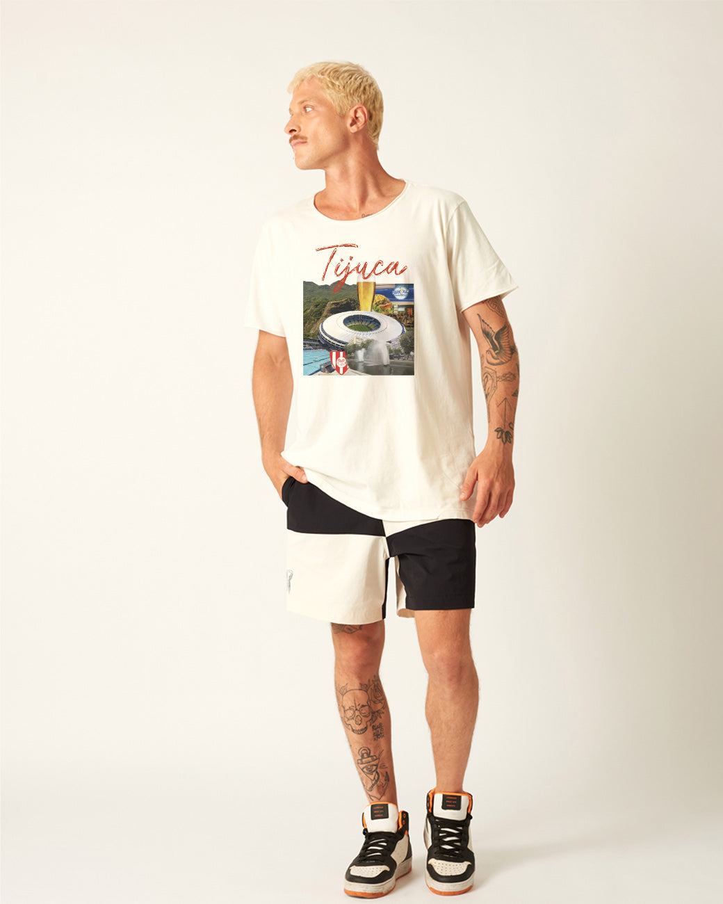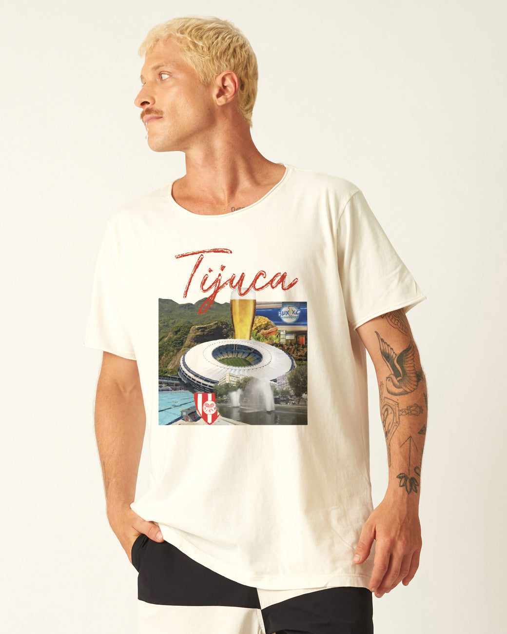 A Camiseta Tijuca é feita na nossa modelagem Relax unissex, com a gola e as mangas cortadas à fio. Ela passa por um processo de lavagem que confere a peça um toque diferenciado, maciez extrema, além de não encolher no processo de lavagem. Sua modelagem costuma ficar mais soltinha para o público feminino. Tem uma gramatura robusta garantindo maior resistência à peça.