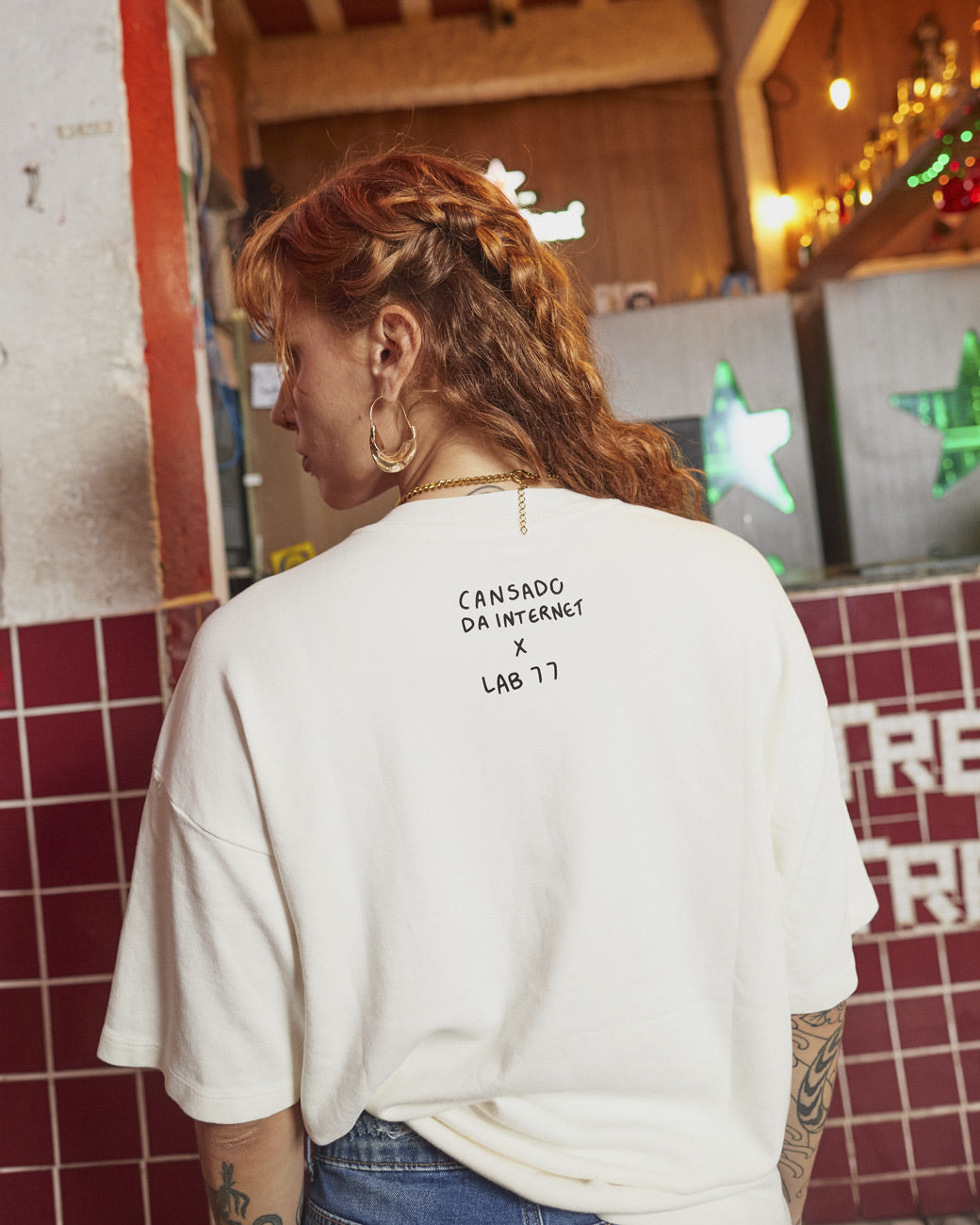 Com uma gramatura de 290g/m², a camiseta garante um caimento e toque premium. Apesar da alta gramatura e modelagem ampla, não é uma peça quente, sendo ideal para qualquer dia. A camiseta é estonada e pré-lavada, oferecendo um toque macio e fresco.