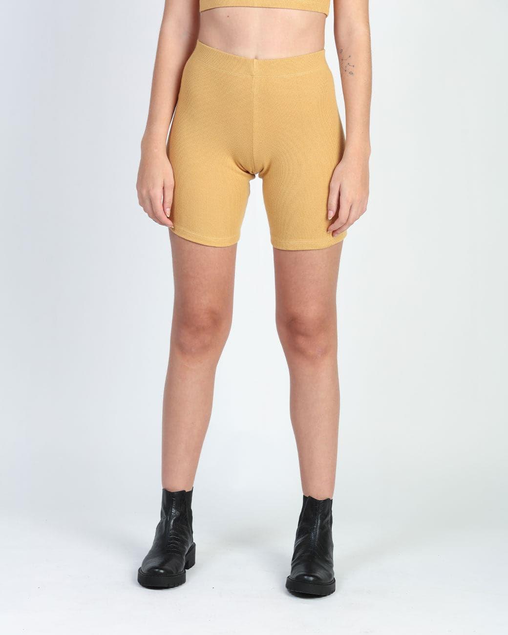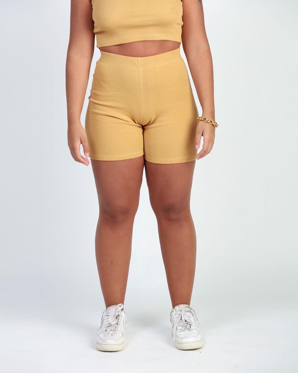 Short Ciclista Ribana Ocre. Peça coringa para você combinar todos os seus looks. Sua composição é feita em 90% algodão sustentável e 10% elastano!
